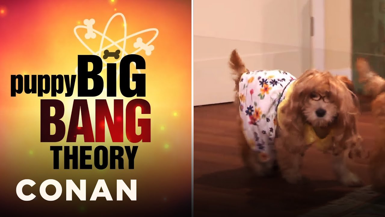 To help the cast of The Big Bang Theory celebrate the upcoming 200th episode of their show, Conan O’Brien dressed up adorable puppies like each of their characters.
