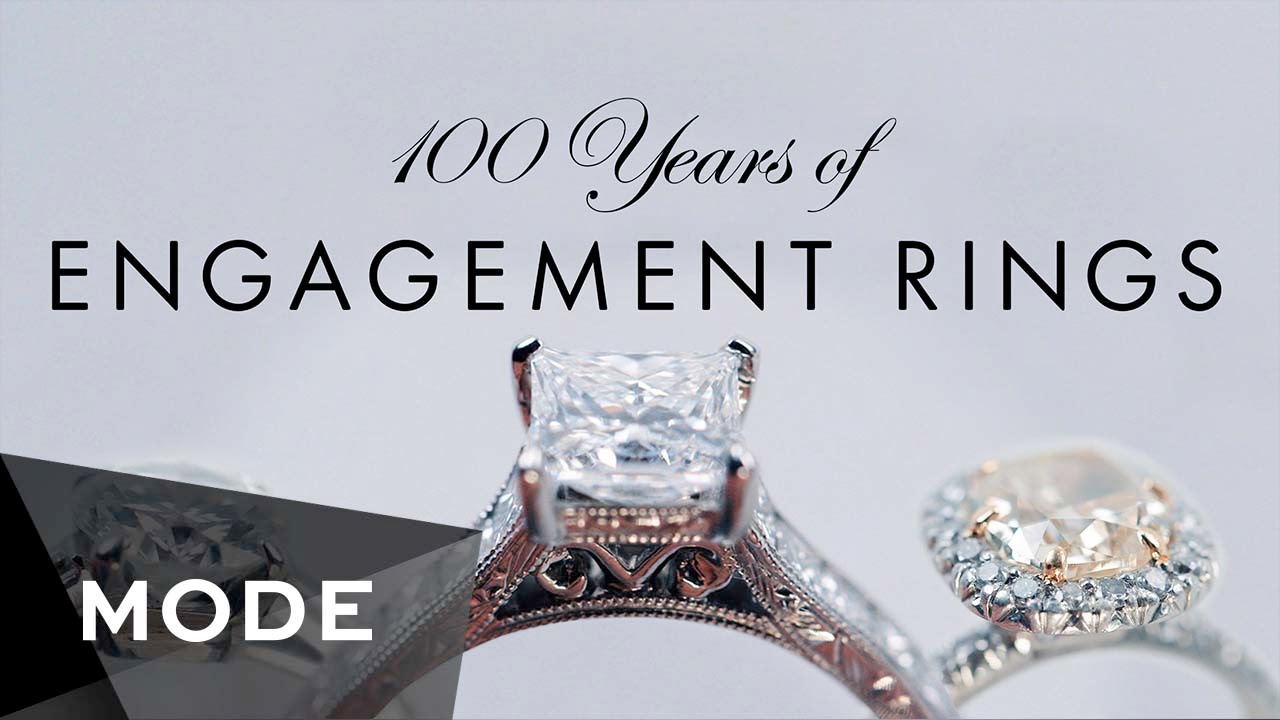 In the latest edition of their “100 Years of Fashion” series, Mode looks back at the evolution of engagement rings by showcasing popular engagement-ring styles, one from each decade, from the 1910s to the present.
