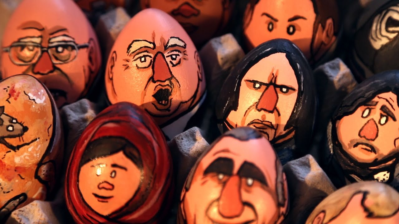 Los Angeles-based actor and artist, Barak Hardley, spent countless hours hand-painting dozens of amusing egg portraits of celebrities and pop culture figures for the 2016 edition of his annual “Year in Easter Eggs” art project.