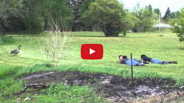 In the second “when birds attack” video of the day (previously), a grumpy Canadian goose tells three mischievious teens to GTFO when they get a little too close for his comfort.