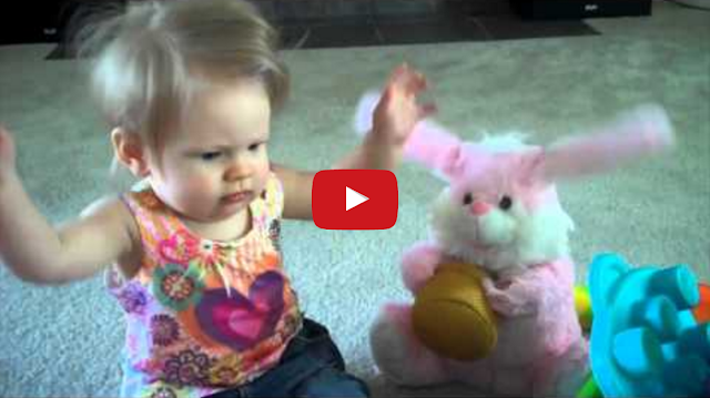 To help get you into the Easter spirit, here’s an adorable baby girl enthusiastically dancing along as her pink Easter bunny toy sings the classic children’s song, “Here Comes Peter Cottontail.”