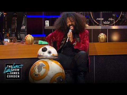 The lovable BB-8 astromech droid, from Star Wars: The Force Awakens, stopped by last night’s episode of The Late Late Show, to perform a song with musician, comedian, and the leader of the Late Late Show band, Reggie Watts.
