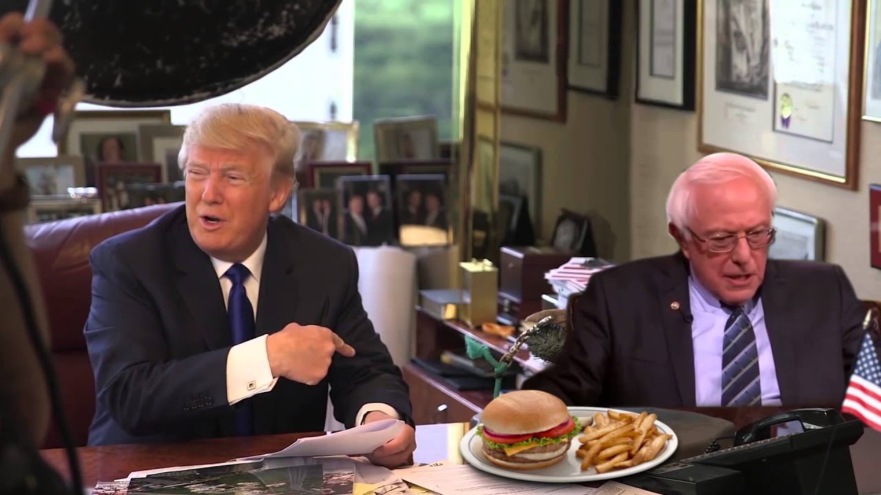 YouTube user MisterOwlMan follows up his popular Bernie Sanders scaring Donald Trump at a Rally video with this equally amusing clip of Bernie shooing Donald away from his French fries.
