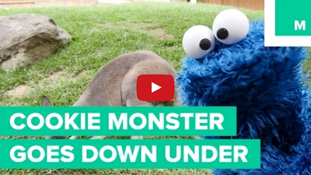 Cookie Monster, the blue, cookie-obsessed muppet from Sesame Street, goes down under to meet some of the animals at Taronga Zoo in Sydney, Australia.