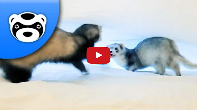 Two cute ferrets, Yossarian and Fuzz Lightyear, have a great time playing on and under a sheet while their owner attempts to make the bed.