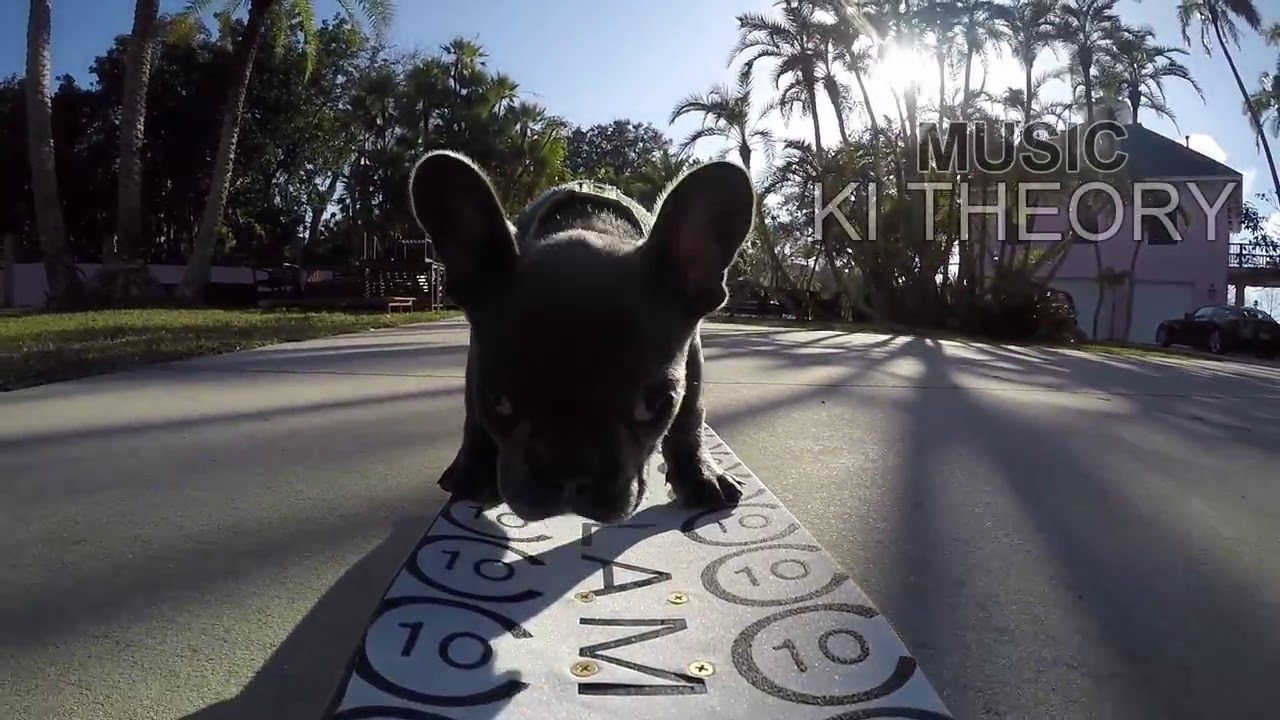 Dog trainer, Brian Bowie, put together this montage of him using positive reinforcement training to teach a 10-week-old French bulldog puppy how to ride a skateboard.