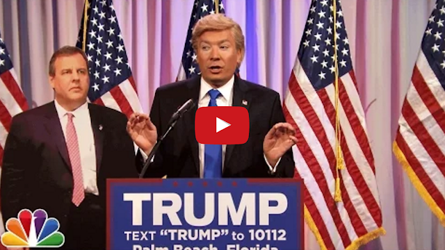 Front-running Republican presidential candidate, Donald Trump (Jimmy Fallon), speaks about his Super Tuesday victories alongside his new supporter, Governor Chris Christie.