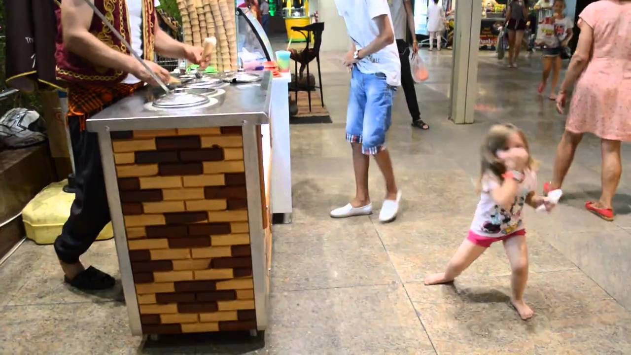 In this cute video from Turkey, an ice cream vender smoothly plays tricks on a happy little girl, while serving her an ice cream cone.