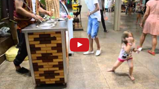 In this cute video from Turkey, an ice cream vender smoothly plays tricks on a happy little girl, while serving her an ice cream cone.