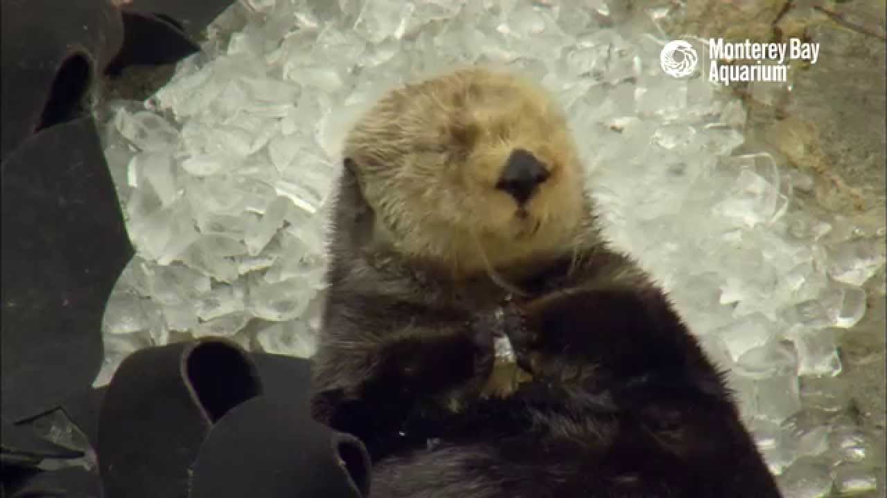 In this short but cute clip, Gidget, the sea otter, from Monterey Bay Aquarium, experiences brain freeze while happily snacking on ice cubes.