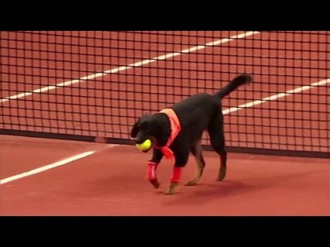 Rescued Dogs Happily Retrieve Balls During Tennis Tournament