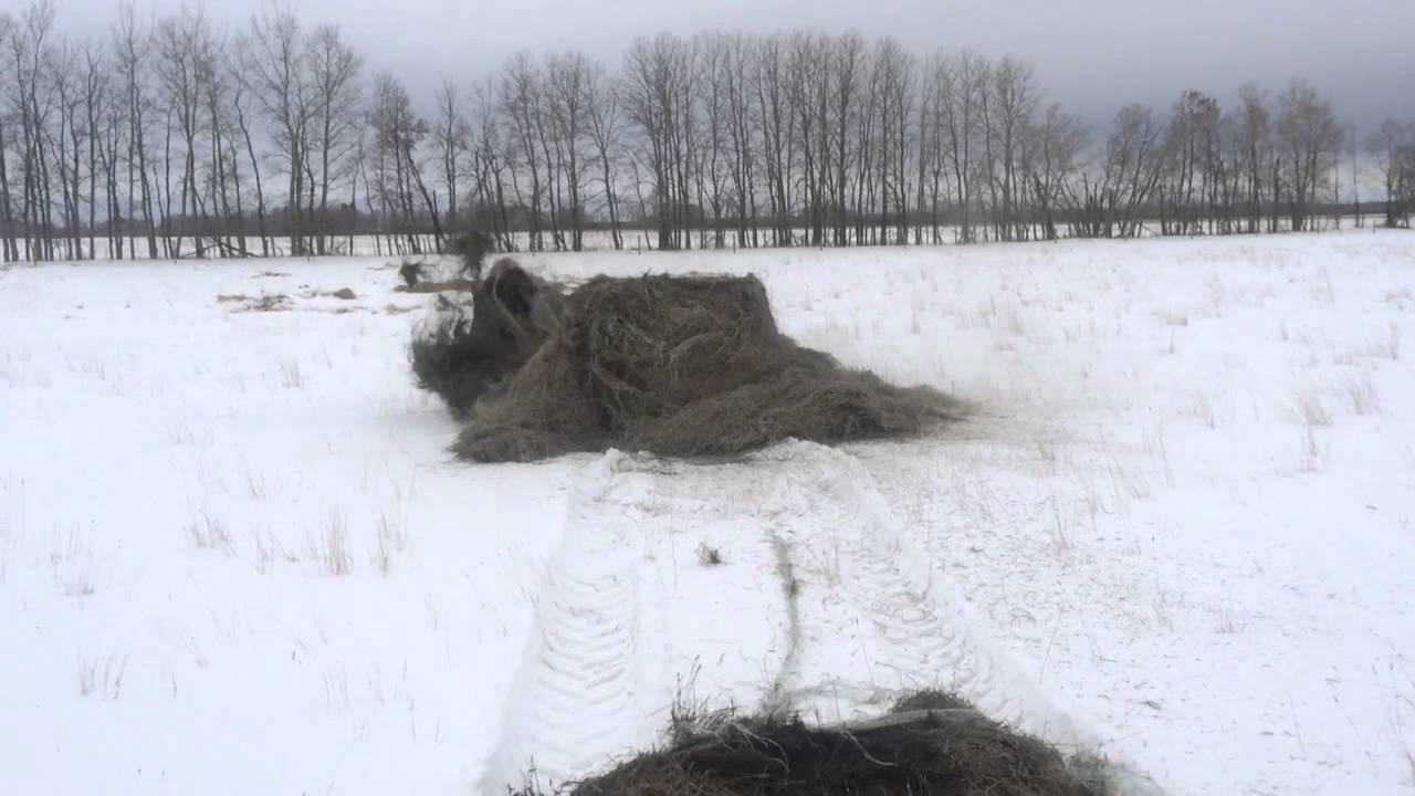 When his dinner arrives, this young bison from Torch River ranch, in Snowden, Saskatchewan, excitedly runs to the pile of hay and proceeds to play with it before chowing down.
