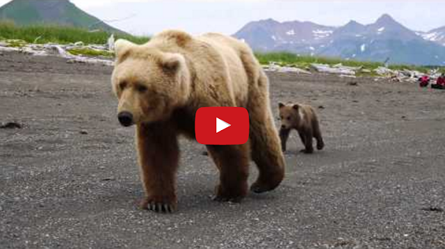A group of tourists visiting a beach in Alaska’s gorgeous Katmai National Park got the unexpected experience of a lifetime when a mama grizzly bear, and her two cute cubs, leisurely passed by them, just a few feet away.
