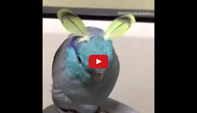 Bunny Bird by Tastefully Offensive Japanese Twitter user, Rice to the Temple, figured out that two tiny feathers can be used make an adorable pair of bunny ears for his pet parakeets. [こめかみにこめ]