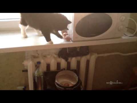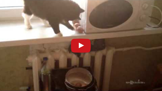 In this amusing clip from Russia, a bratty cat entertains himself by knocking all his human’s potatoes off the counter. Thankfully, most of them make it into a pot.