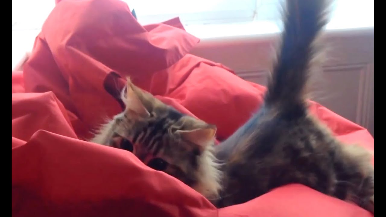 Curious felines play on and attack bean bag chairs in the latest cats vs. household objects compilation from CrazyFunnyStuff.