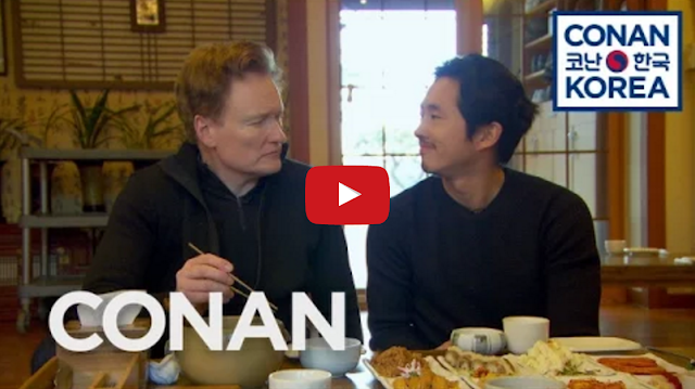 While filming his recent Korean episode of Conan, host Conan O’Brien and his “cultural ambassador,” Steven Yeun from The Walking Dead, dined on some traditioan Korean dishes.