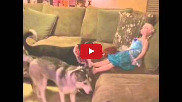 Dog Tries to Play Fetch with Giant Elsa Doll