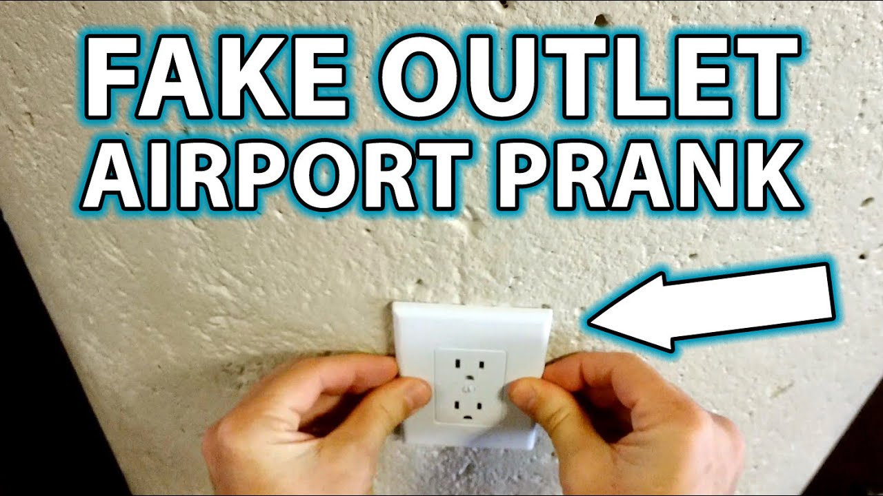 Magician and prankster, Rich Ferguson, stuck a outlet cover on the walls of an airport terminal to trick people into believing they’ve found the perfect spot to charge their electronic devices.