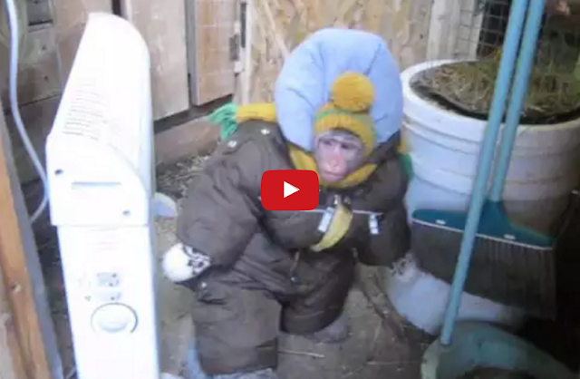 In this odd but cute video from Russia, Feder, the pet monkey, who looks like a toddler in his warm winter clothes, excitedly hops over to a farmhouse to check in on his goat and chicken pals.