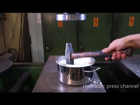 In the latest episode of his oddly entertaining YouTube series, Finnish machine shop owner, Lauri Vuohensilta, uses his hydraulic press to attempt to squash oobleck (a non-Newtonian fluid made of cornstarch and water) with 100 tons of force.
