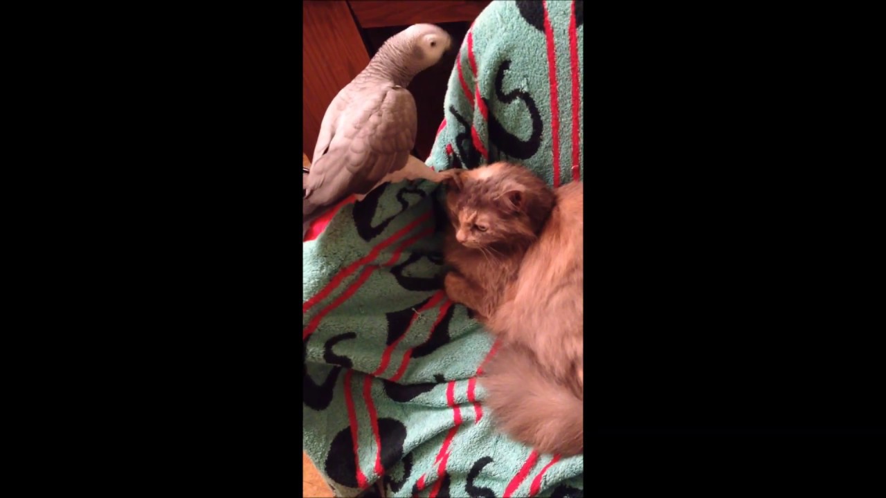 Parrot Relentlessly Annoys Cat ByTastefully Offensive April 6, 2016 While his feline housemate is trying to take a nap, this pesky African grey parrot tests the cat’s patience by trying to grab and nibble on her ear. [Vendunar/via Natsdorf]