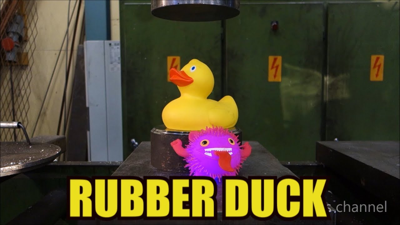 In the latest episode of his always entertaining YouTube series, Finnish machine shop owner, Lauri Vuohensilta, uses his hydraulic press to find out what happens when you squash a rubber ducky and a rubber toy monster with 100 tons of pressure.