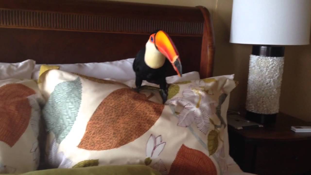 Toucan Having Fun Playing on Bed