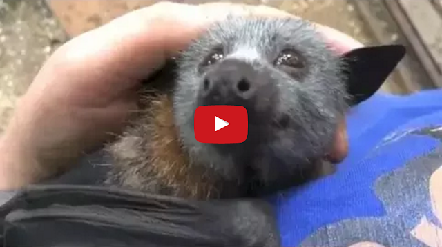 Jeddah, a rescued grey-headed flying fox bat from Australia, makes adorable squeaky noises whenever his caretaker, Meg Churches, massages and scratches his fluffy little head.