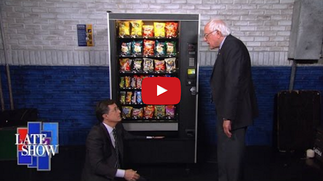 Sen. Bernie Sanders shows up to give Late Show host, Stephen Colbert, a pep talk when the odds of getting a candy bar are stacked against him.