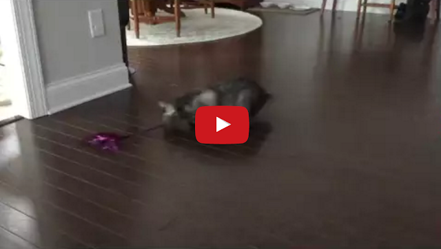 Michael Bell’s cute cat, Bliss, figured out a fun new game where she quickly spins in circles while holding her favorite toy.