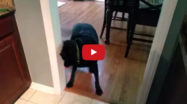 Poor Bill, the black labrador retriever, bonks his noggin on a door frame while demonstrating his new “get in your bed” trick.