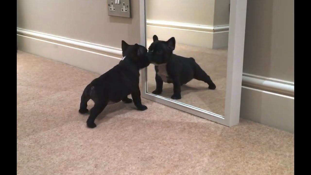 Enjoy three minutes of adorably confused French bulldog puppies picking fights with their own reflections in mirrors.