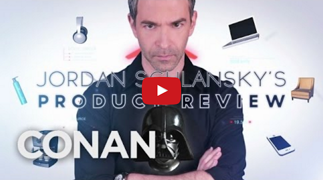 In his recurring product review segment, Conan O’Brien’s famously quirky associate producer, Jordan Schlansky, discusses his recently acquired Darth Vader replica mask by eFx collectibles.