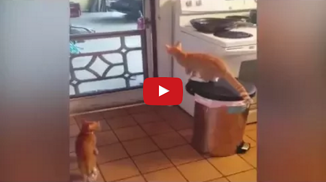This ginger tabby kitten channels his inner ninja to bust open a screen door so he and his twin brother can escape the house.