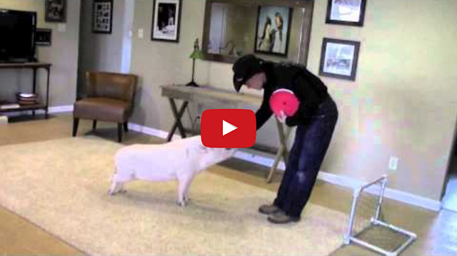 Mudslinger the Pig Shows Off His Sports Skills ByTastefully Offensive May 9, 2016 Mudslinger, the super smart pig, demonstrates his impressive frisbee, soccer, and golf talents with help from his trainer and owner, John Vincent. [Top Hogs/via lnfinity]