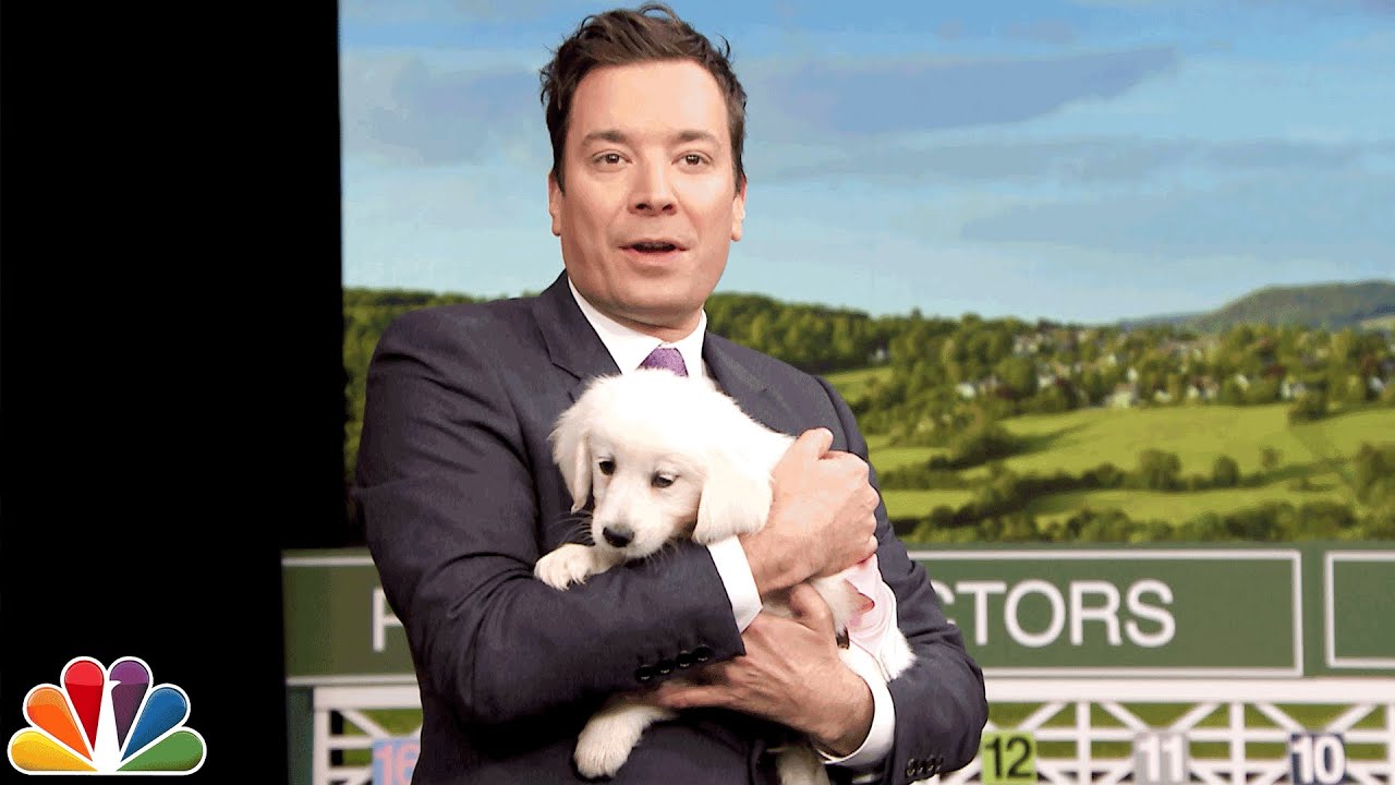 Tonight Show host Jimmy Fallon welcomes back his golden retriever “Puppy Predictors” to predict the outcome of the 142nd running of the Kentucky Derby horse race.