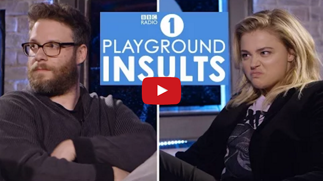 (PG-13 content) In this clip from Scott Mills’ BBC Radio show, actors Seth Rogen and Chloë Grace Moretz, who are currently in the U.K. promoting their upcoming film, Bad Neighbors 2, play the game “Playground Insults,” where they try not to laugh while attempting to come up with the best insults for each other.