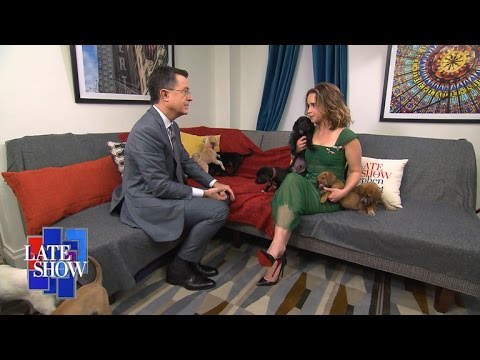 Late Show host, Stephen Colbert, discovers that when she’s not playing The Mother of Dragons on HBO’s Game of Thrones, Emilia Clarke is the mother to something much cuter (but just as deadly).