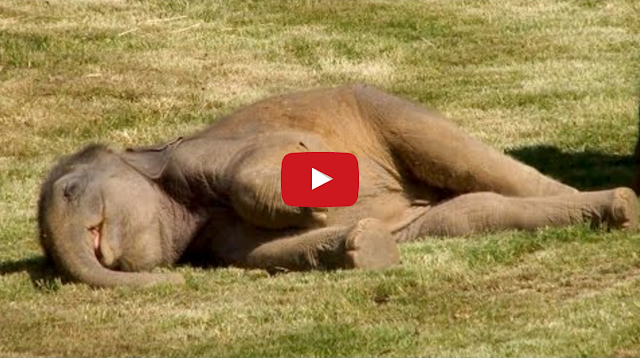 Despite multiple attempts from his mom, this adorable, conked out baby elephant from the Prague Zoo resists waking up from his afternoon nap until zookeepers arrive to nudge him awake.