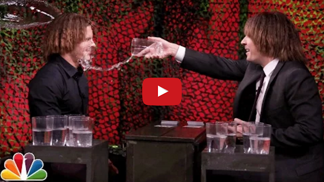 In this clip from last night’s episode of The Tonight Show, host Jimmy Fallon and actor Zac Efron play a variation of the classic card game, War, where the loser of each round gets drenched with a glass of water.