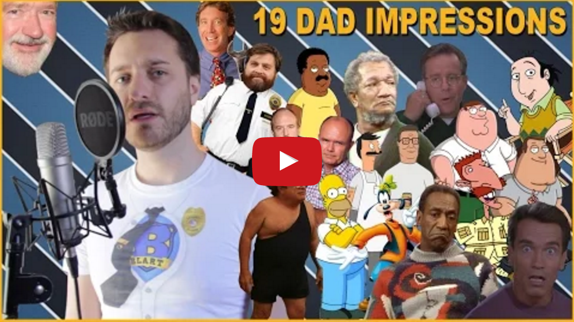 (PG-13 language) In honor of Father’s Day, Los Angeles-based comedian and voice actor, Brock Baker, aka “The Man of a Kajillion Voices,” performs spot-on impressions of 19 cartoon and TV dads we’ve all grown up with, including Hank Hill, Homor Simpson, Home Improvement‘s Tim Taylor, Goofy, Fred Sanford, Louis C.K., and more.
