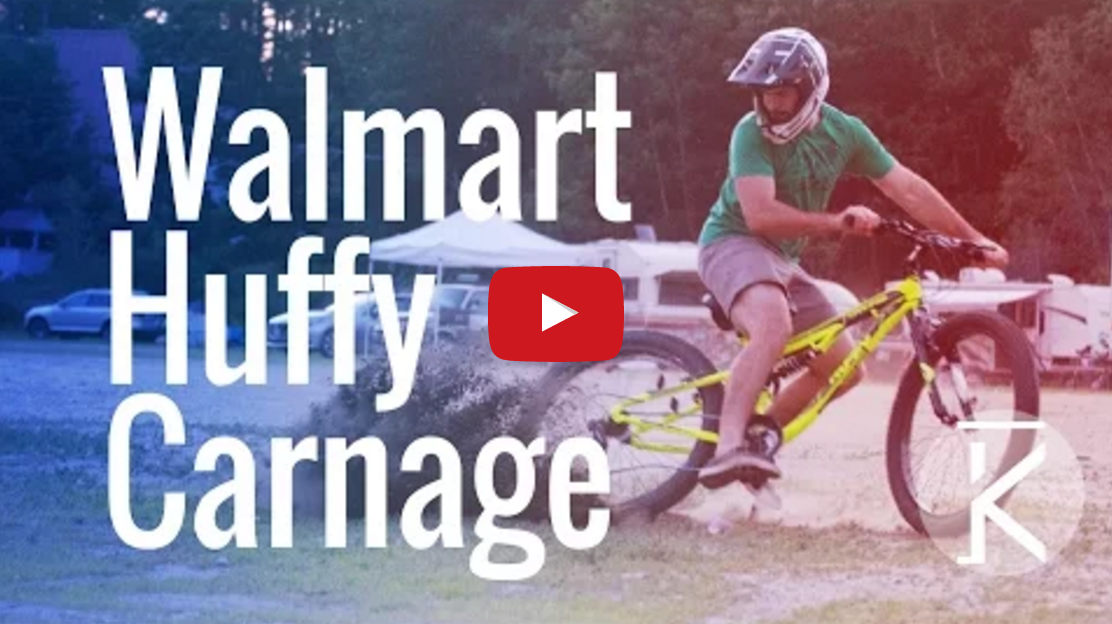 Professional downhill mountain bike racer, Phil Kmetz, decided it would be fun to put Walmart’s inexpensive Huffy Carnage Mountain Bike to the test by taking it down the Hawleywood Jump trail at the Thunder Mountain Bike Park in Charlemont, Massachusetts.
