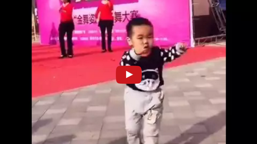 In this cute video from China, a young boy steals the show at an outdoor dance performance by showing off some adorably impressive dance moves of his own.