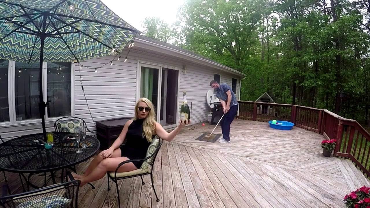 While having a date night with his very trusting wife, Joshua Kelley came up with this cool golf trick shot idea of popping the cork on a champagne bottle with a chip shot.