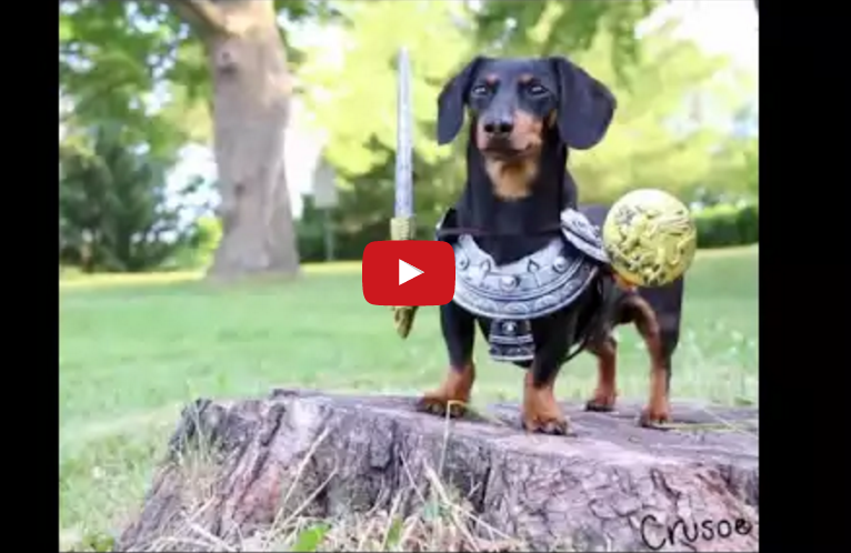 In honor of tonight’s season finale of Game of Thrones, Crusoe, the celebrity dachshund, creates his own version of the show, which features appearances by King Crusoe, The Squeaker of Dragons, The Hound, and Cru Snow.