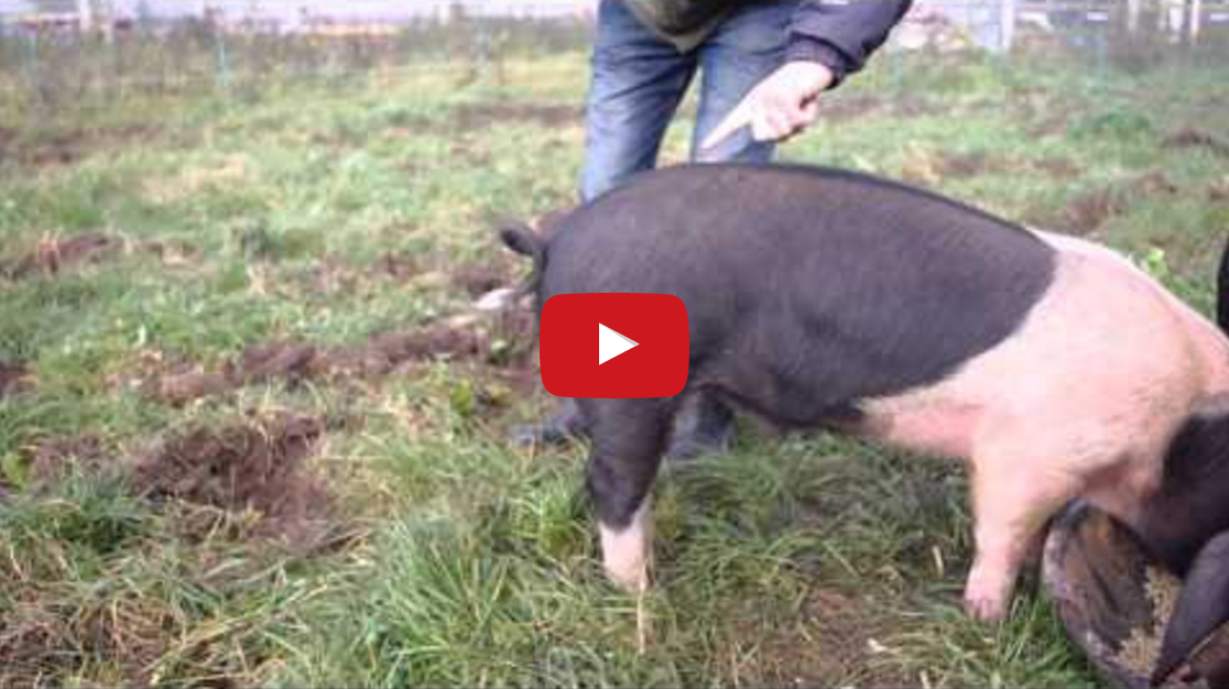 A man named Gray from Vale Head Farm in Stourbridge, England demonstrates a simple trick to make a pig temporarily uncurl its tail.