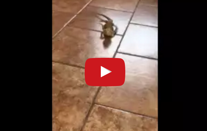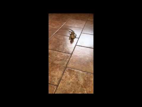 Spyro, the bearded dragon, can normally walk and run just fine on the tile kitchen floor, but in this video, he got a little too excited when his owner offered him a tasty mealworm.