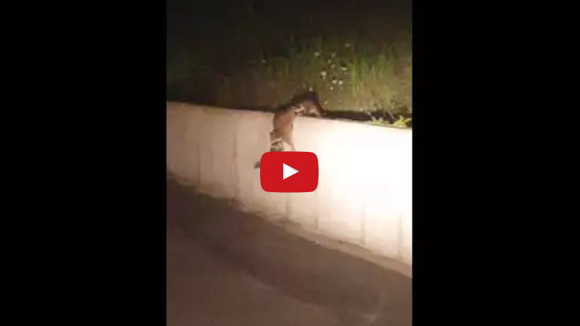“I saw the mother raccoon on the wall with one of her babies as she was attempting to get her other baby over the wall. The mother raccoon leaned over the wall as the baby held onto her legs so she could reach out and grab the other baby and pull him up. Great example of a mother’s love and teamwork!”