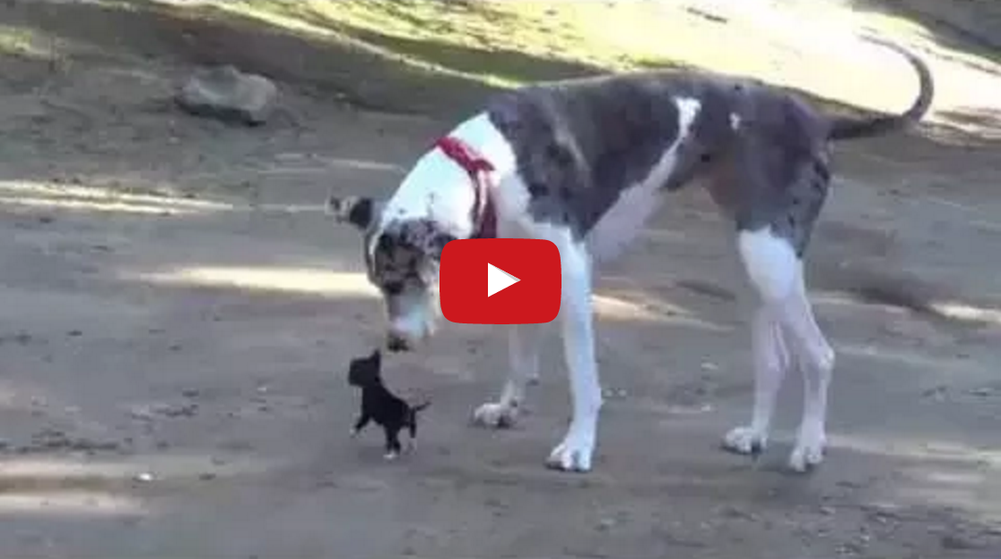 Tiny Puppy Meets Huge Dog ByTastefully Offensive June 27, 2016 After escaping from his kennel, this tiny, adorable chihuahua puppy confidently attempted to make friends with Sasha, the great dane, and the other big grown-up dogs.
